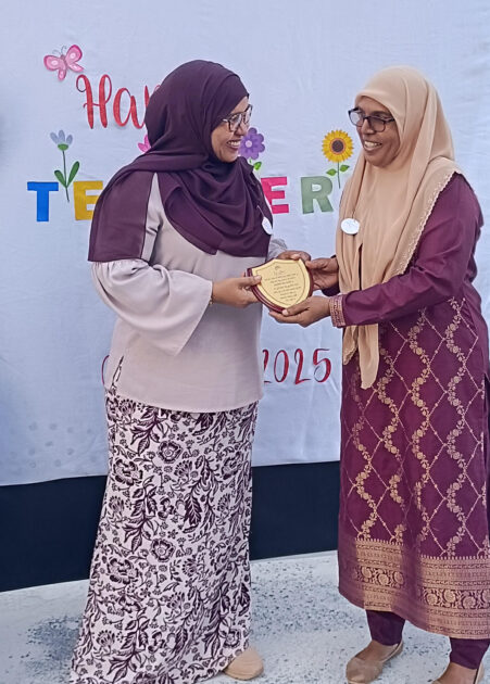 ތިރީގައި އެވަނީ 20 އަހަރަށްވުރެ ގިނަދުވަސްވަންދެން ޚިދުމަތުގައި ތިއްބެވި ޓީޗަރުންގެ ތެރެއިން މީދޫ ކޮމިއުނިޓީގެ ހަނދާނީ ޝީލްޑް ލިބިލެއްވި ޓީޗަރުން